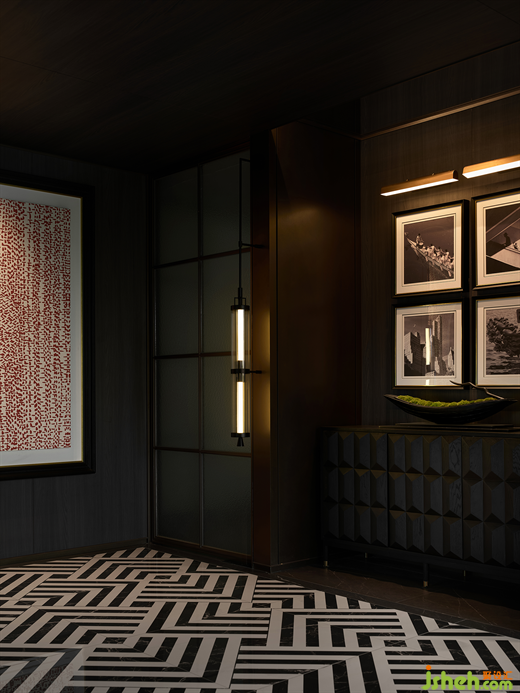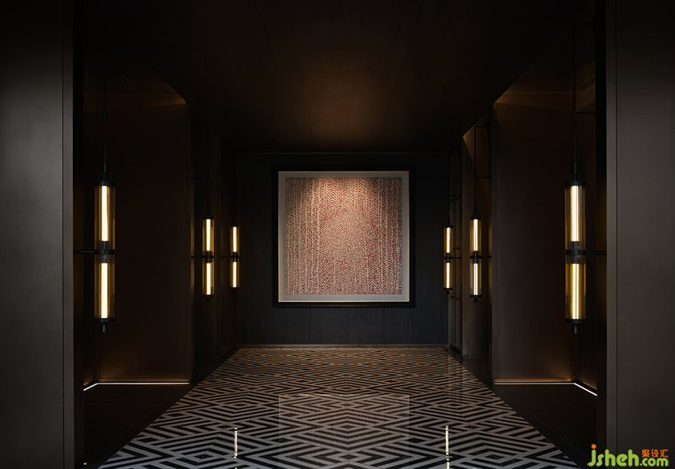 空間主軸在于尊貴華美的氛圍營造,運用光影變化,拼花石材、大理石等多種高檔材料的組合,藝術(shù)壁燈的點綴,勾勒出精致高雅的空間美學(xué)。