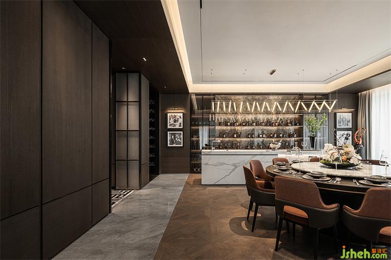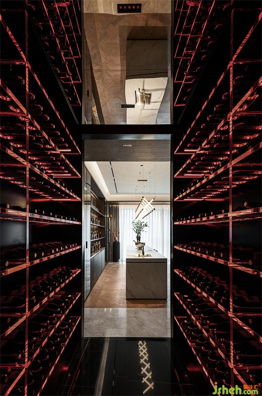 水吧向內側的延伸,是極具展示屬性的酒窖,在用餐的間隙,挑上一瓶紅酒,點染用餐的情調。