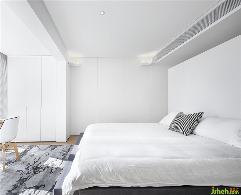 主人房可以說(shuō)是自然材質(zhì)與開放式空間的靈魂結(jié)合,木質(zhì)的地板上鋪著一席黑白灰現(xiàn)代風(fēng)地毯。床位于房間正中,位置美觀合理之余,還饒有趣味。試想一下,當(dāng)大人坐在床上,裝修設(shè)計(jì)小孩子圍著床嬉笑玩耍轉(zhuǎn)圈圈,一家人其樂融融,盡享天倫之樂!