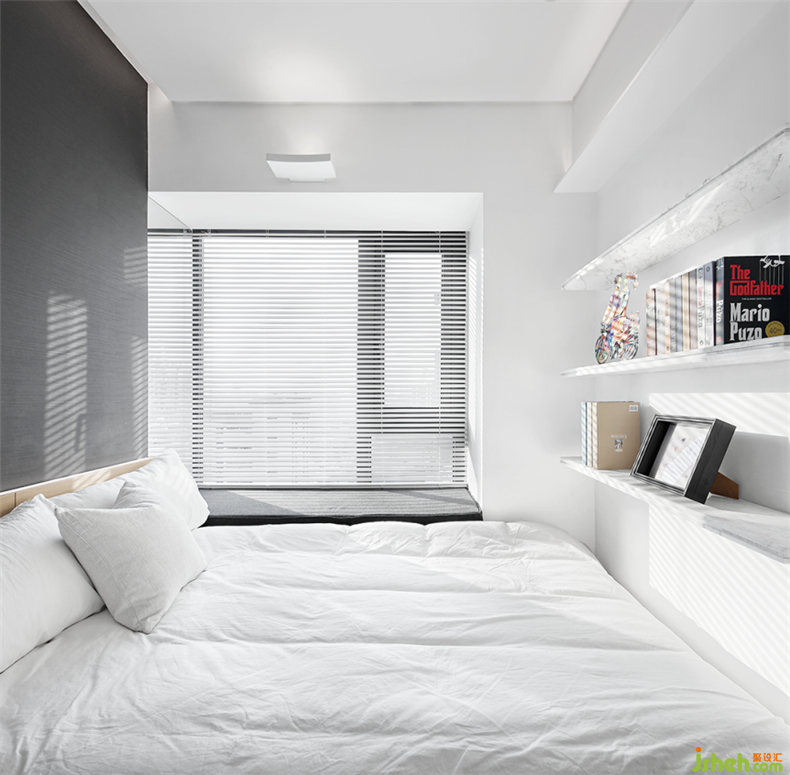 個(gè)人認(rèn)為,老人房的設(shè)計(jì)是我最喜歡的,因?yàn)橛幸粋€(gè)大飄窗,加上百葉窗。在一個(gè)陽(yáng)光明媚的午后,溫柔的陽(yáng)光透過(guò)百葉窗照映進(jìn)來(lái),給人陽(yáng)光斑駁的感覺,是出大片的絕佳位置!