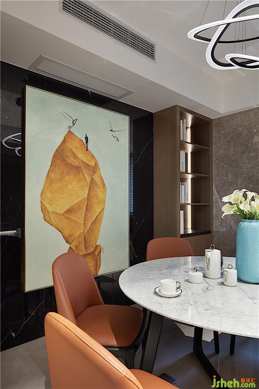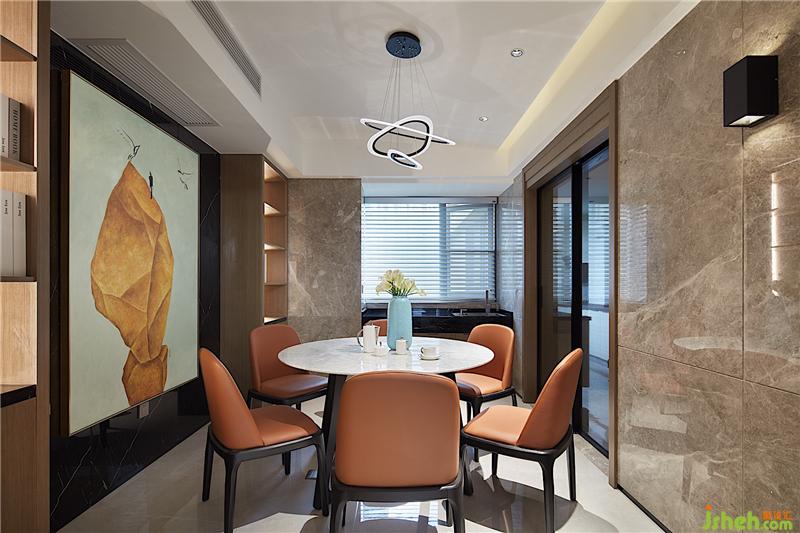 餐廳延續(xù)客廳的風格,沒有過大變化。主要是在功能作用上下了功夫,由于餐廳兩邊位置過大,僅僅是只擺個餐桌椅未免太過空曠,設計師把邊角位置縮小一點,做了酒柜,同時在飄窗位置做了吧臺。簡直是一舉多得啊。既保留了一定空間,還把邊角位置充分利用起來,享受的功能也更齊全了。室內設計師