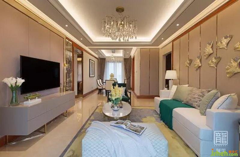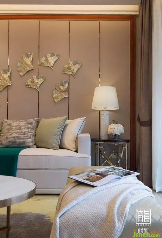 米色主調(diào)性,和咖色的木作為初秋大自然的色調(diào),玫瑰金不銹鋼的紋樣增加時尚國際范兒。深綠與銀杏黃及自然植物紋樣的畫在軟裝中做點綴——成都氣質(zhì)。