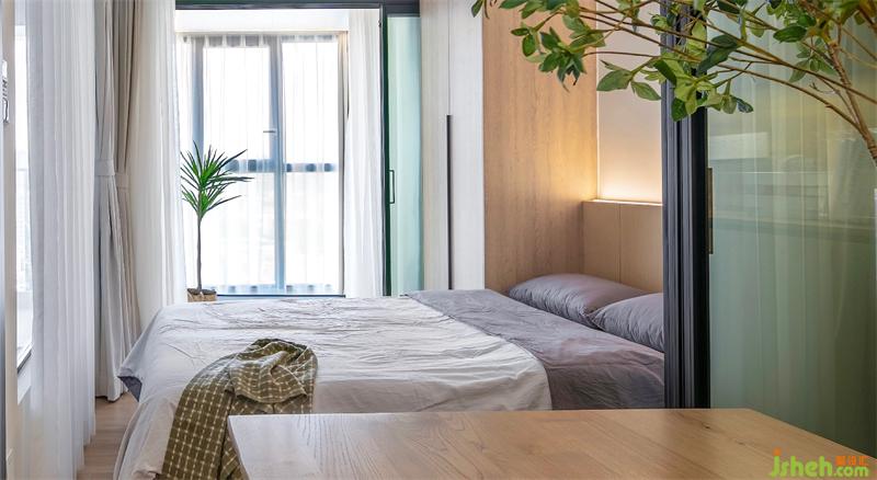 主臥在客廳與陽(yáng)臺(tái)的中間,層層遞進(jìn)的設(shè)計(jì)讓空間更賦有層次感。墻面是現(xiàn)場(chǎng)砌了500mm的矮墻再安裝透光玻璃,整個(gè)空間通透明亮,1.5米的床后面用木飾面做了高級(jí)的床頭燈帶,保持簡(jiǎn)約感床頭背景墻沒有軟裝掛畫。
