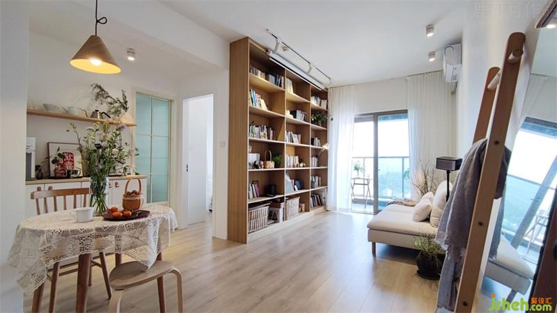 客廳做了到頂?shù)臅?shū)柜,樸實(shí)無(wú)華的原木質(zhì)感讓整個(gè)空間充滿自然的氣息,大面積的留白增強(qiáng)空間的通透感,一人一樸居,一書(shū)一世界。