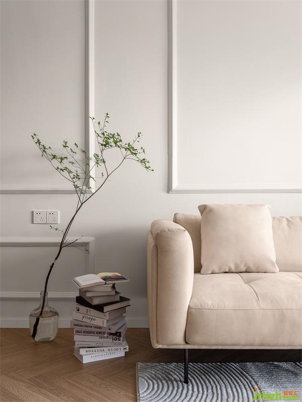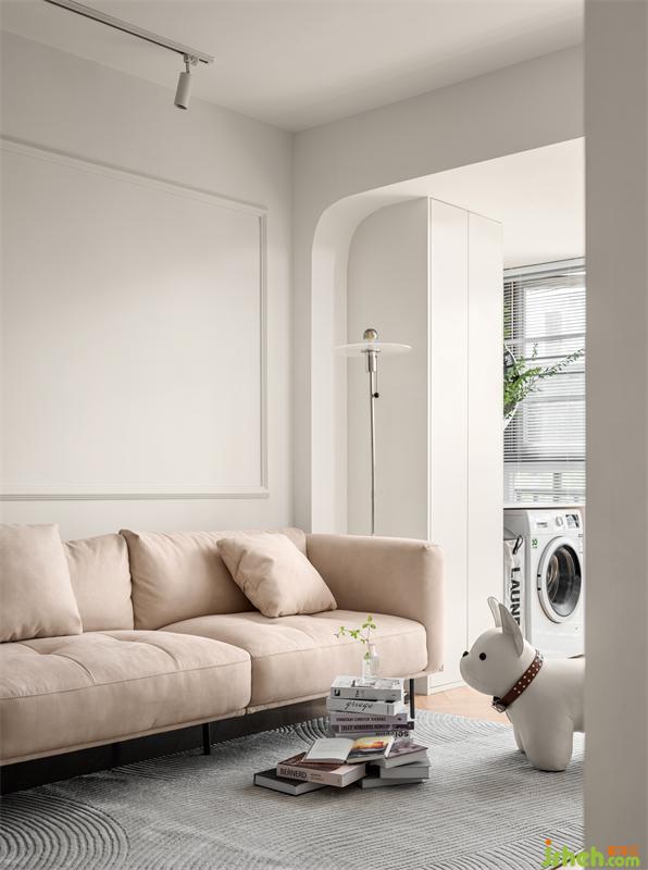 明亮的窗戶采光,干干凈凈的家具,無論是坐下來休憩,還是躺臥著入眠,安靜的內心總是讓人愉悅的。陽臺與客廳之間設計了小邊拱型過渡,筆直的石膏線與圓潤的弧拱剛柔相濟。