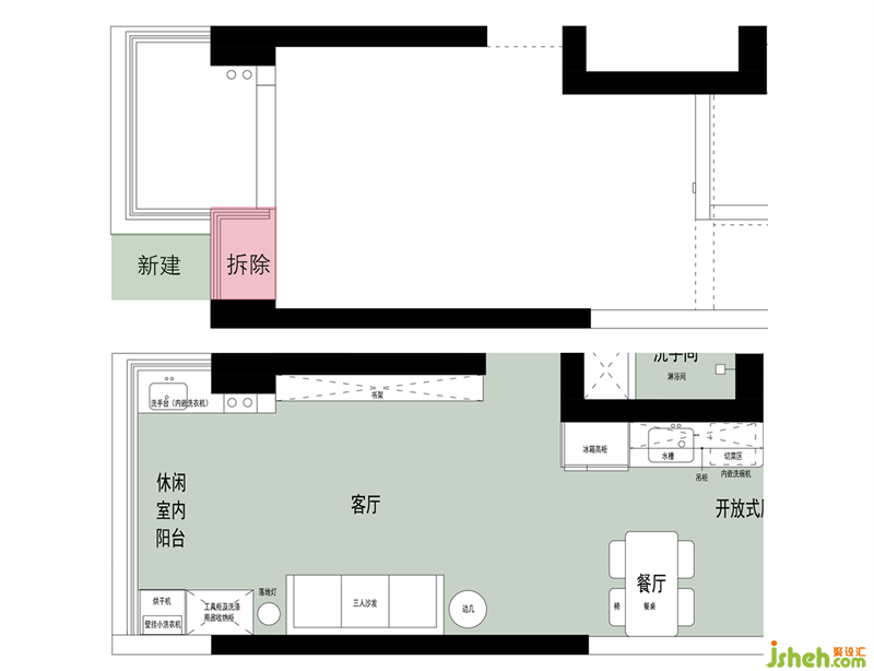 原戶型是傳統(tǒng)客廳,獨立的陽臺,改造后拆除了原來的小窗臺,往外擴建了部分,使整個客廳的面積都寬敞了,封了陽臺,可用的功能只增不減