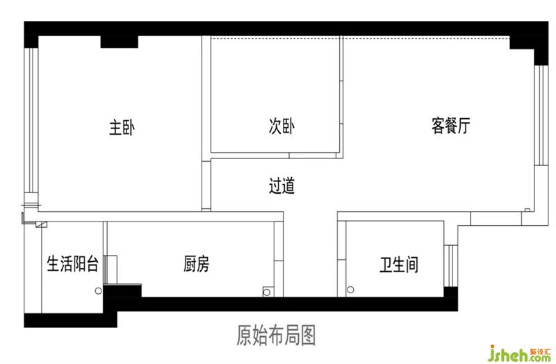 原戶型的過道狹長,對于原本就不大的空間來說是比較浪費(fèi)的,重新布局后把原次臥房改到了原廚房,釋放出更多的空間給客廳,改造后客廳既寬敞又通透。