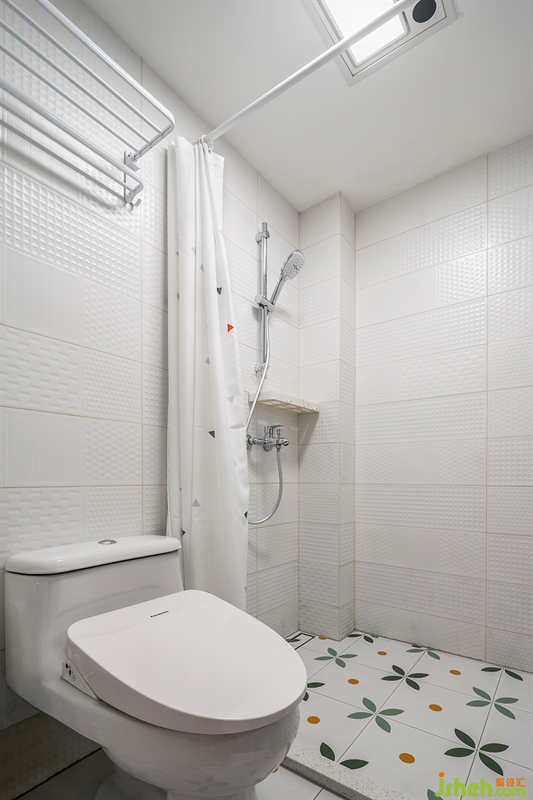廚房墻面用了經(jīng)典的白格子磚,U字形開放式廚房 ,洗烘一體機及洗碗機嵌入櫥柜,遵循廚房黃金使用動線冰箱拿——洗——切——炒的動線。