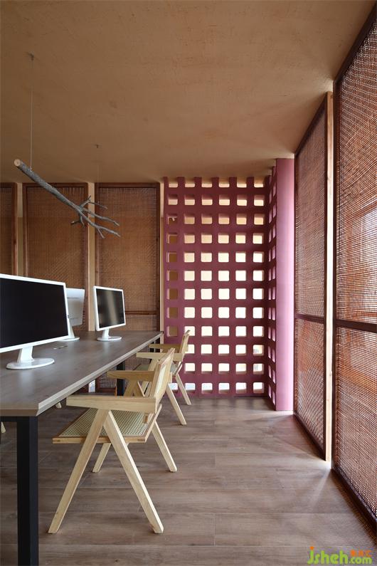 弧形的墻體相互交織,通透半通透的空間增加了空間的”透氣性“,辦公室設(shè)計(jì)創(chuàng)造出了曖昧柔和的空間邊界,弧形的空間圍合虛化掉了空間的緊張感,增添了空間的趣味性。接待空間曲線的圍合形式,不像直線般平淡,也不像折線般生硬,有一些柔美卻灑脫,謙遜卻不羈的感覺.