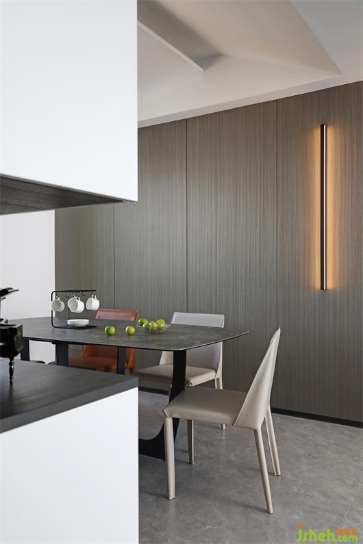 The first impression that the sitting room gives a person is advanced/fashionable/contracted, the tonality of whole space also is to undertake design around above 3 points. The collision of different metope materials makes the vision richer, and the clean line feeling on the top of the metope makes the space more agile.