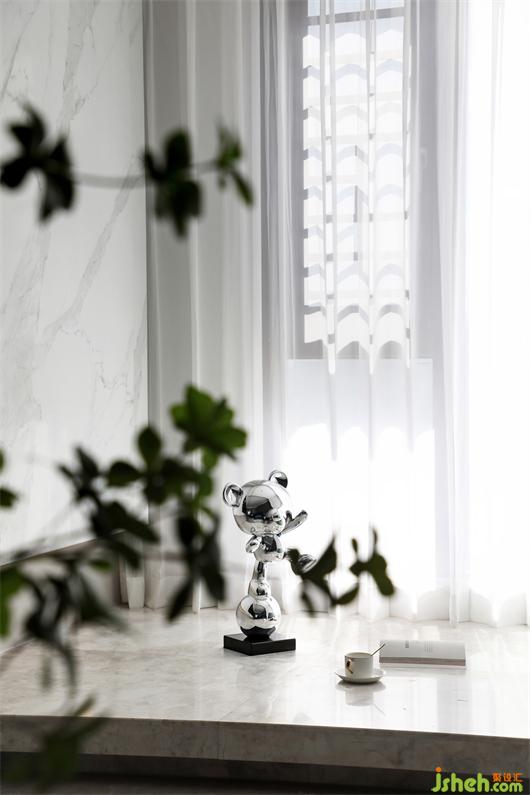 The sand curtain can gently introduce natural light into the space, and the floor-to-ceiling window can better put light into the room, so that the natural light sense and the interior form a good connection.