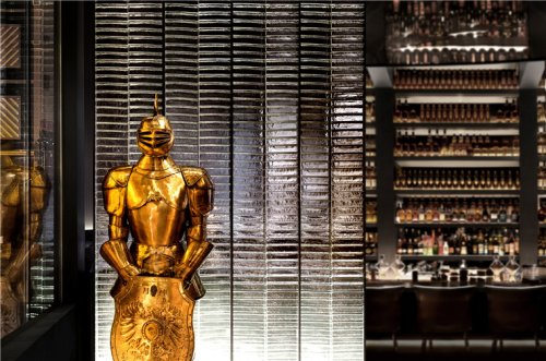 The orderly combinations and intense colors create a carnival feast of misaligned perspectives. It breaks the deep and solemn tone of the vestibule. The metal texture of the main wine rack changes in response to the light, capturing the first visual point of the viewer entering the vestibule and becoming the spiritual symbol of the space.