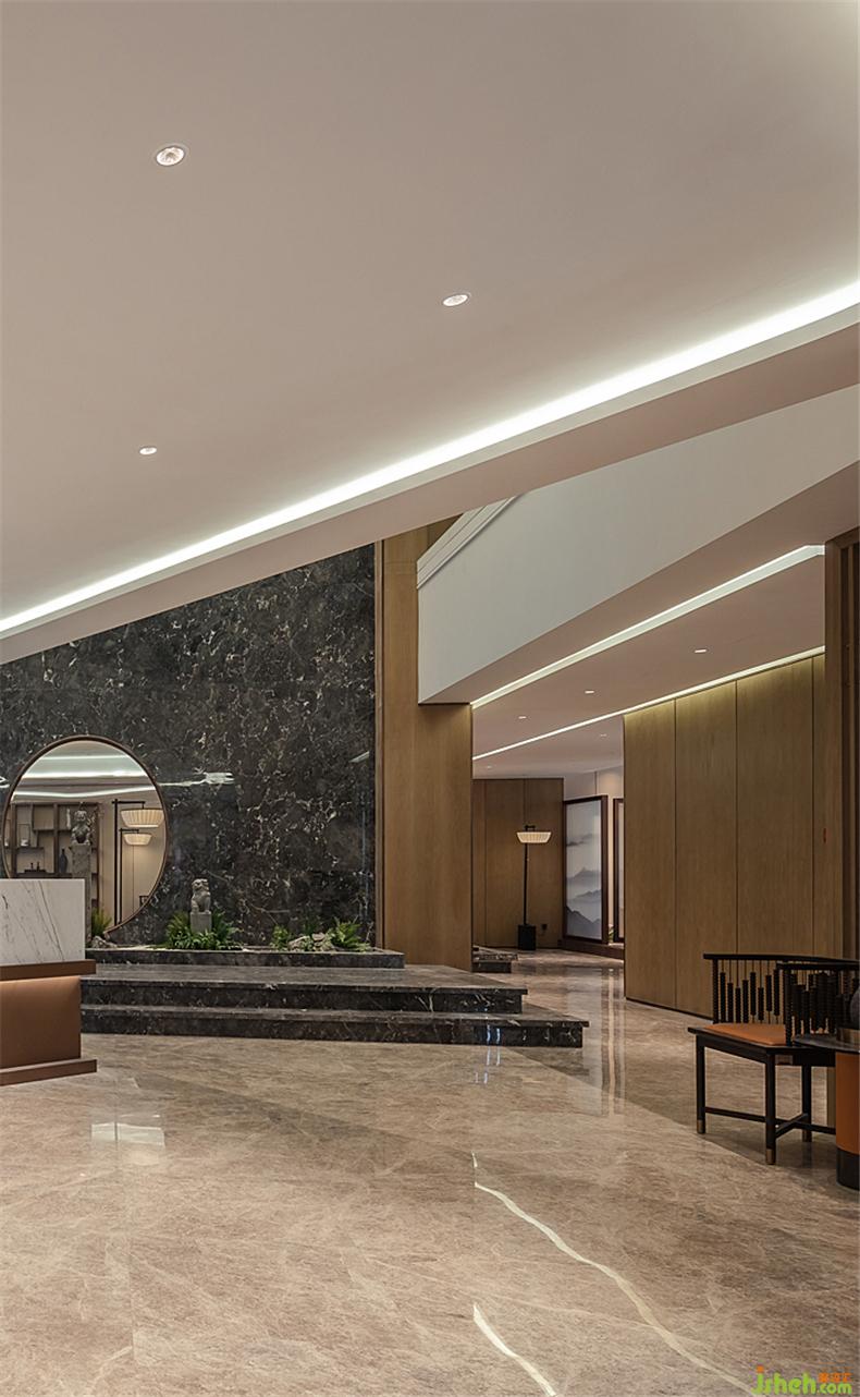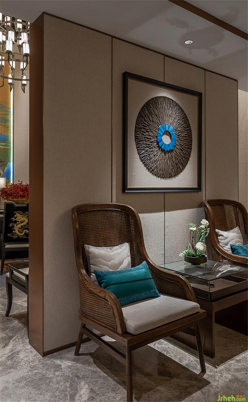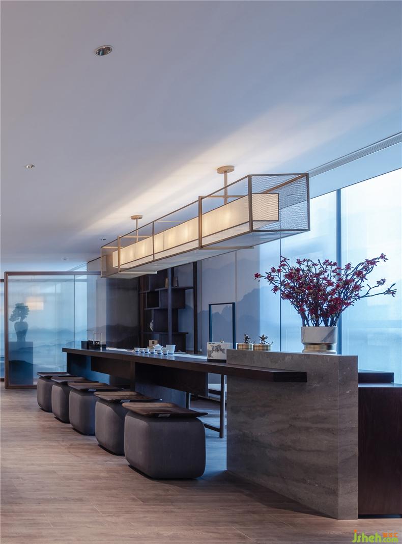 七、七樓和八樓打造成會所型的VIP用戶體驗中心。裝修設(shè)計七層設(shè)有開放性茶藝室、KTV房,紅酒雪茄吧,電影院等,空間中借助隔景的造園手法,從遠處窺探,極大地增強了空間的視覺透視感。