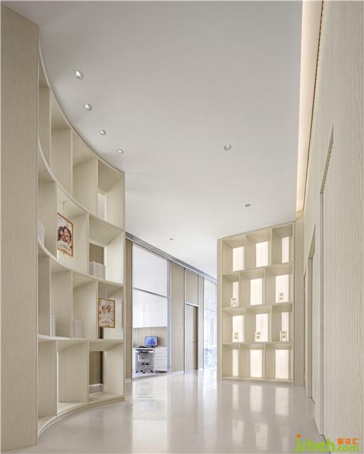 為了化解幽閉窄長的傳統(tǒng)診所走道,診所設計師將“廊”轉(zhuǎn)化為“廳”。相對于廊,廳是打開的,能夠承載更多功能內(nèi)容,而從診室走出面對廳的就診人也會因為視野的開闊和尺度的轉(zhuǎn)變而感到被尊重。同時,這些廳同時為客人提供了宣講、交流、互動、藝術品鑒等活動的場地。
