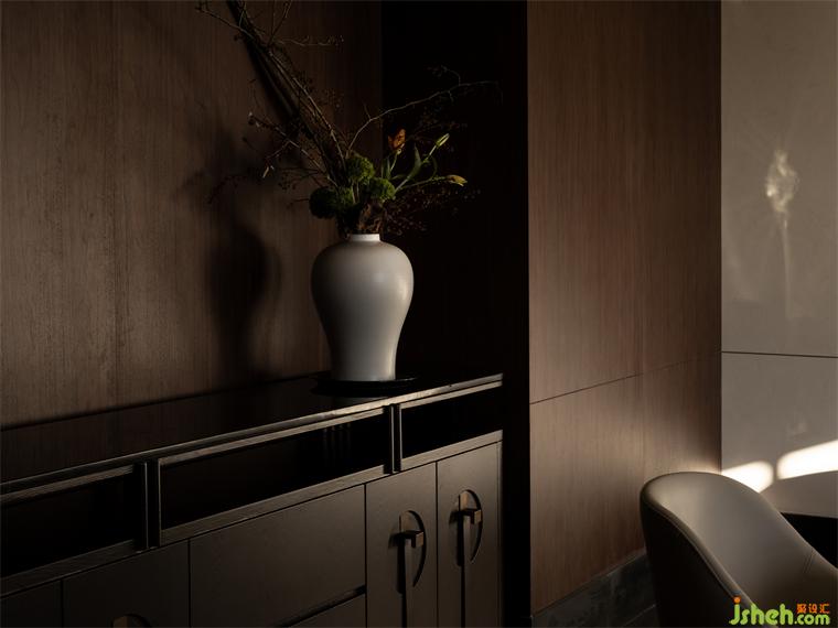 在沒(méi)有自然光且尺度較小的包房?jī)?nèi),設(shè)計(jì)師因地制宜,通過(guò)再造一個(gè)虛擬空間的方法讓小空間因?yàn)橛辛硕鄠€(gè)視覺(jué)層次而消解局促感,鏤空隔斷后,微型的虛擬園林令人神往。