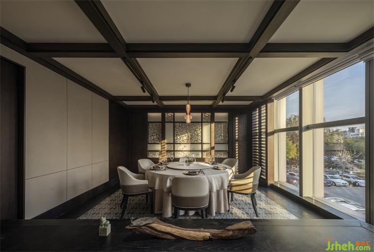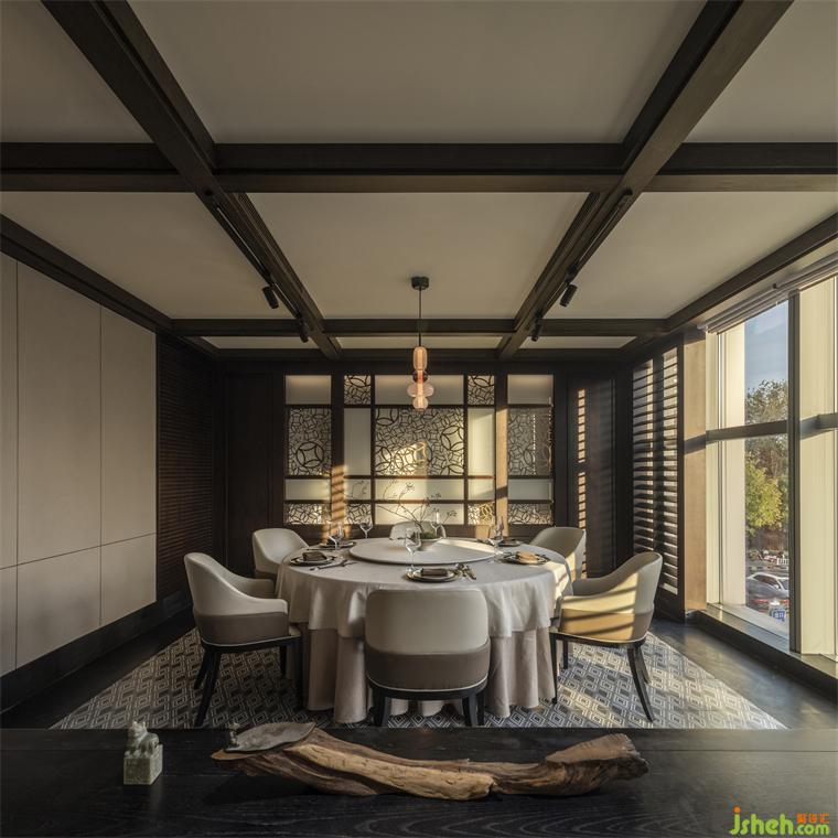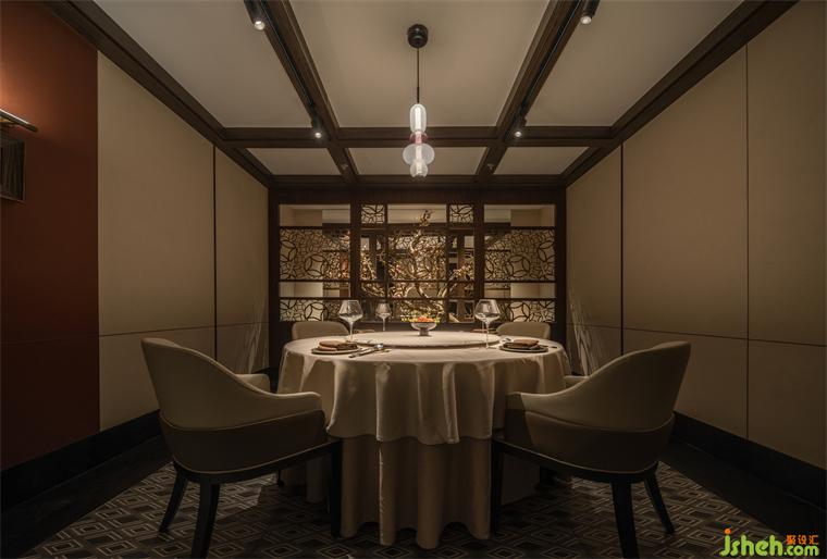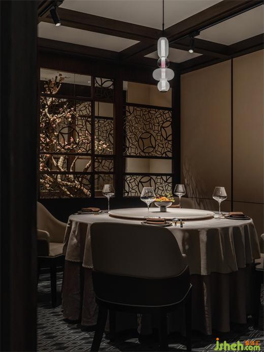 與之相對(duì)的,在較大的包房?jī)?nèi)利用木百葉遮蔽部分凌亂的室外環(huán)境來(lái)達(dá)成內(nèi)部的完整度,自然光則可以通過(guò)百葉窗進(jìn)入,北京餐廳設(shè)計(jì)創(chuàng)造舒適的就餐體驗(yàn)。