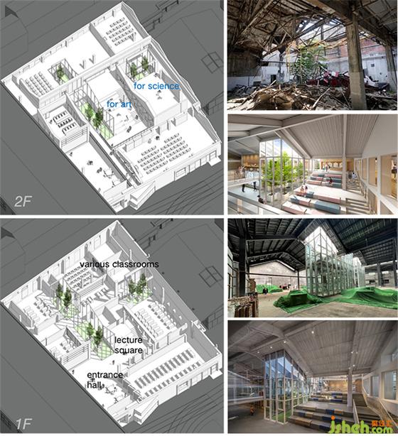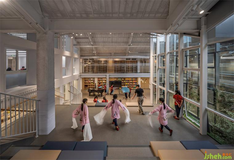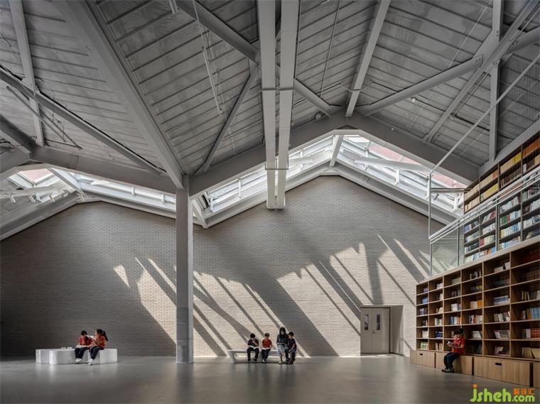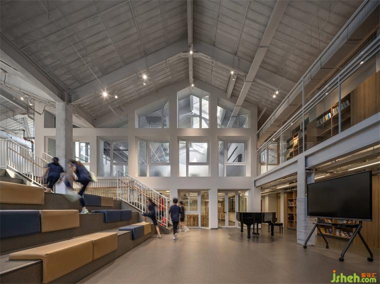 學校裝修設(shè)計綜合樓在改造成教學空間之前,曾經(jīng)是造紙廠廠房,也一度做菜市場使用。歷史保護街區(qū)的城市肌理在此得以保留,也為正澤學校的名校氣質(zhì)找到與之契合的城市建筑文脈基底。