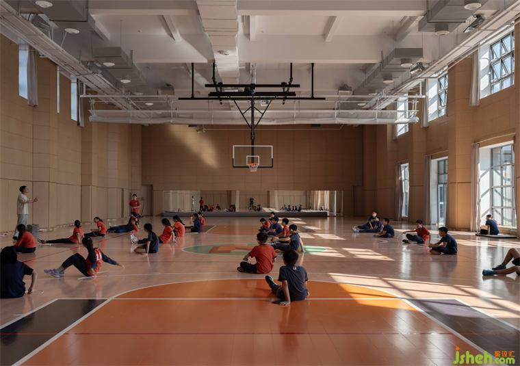 體育館同樣也由倉庫改建,在這里極限容納了1個標(biāo)準(zhǔn)籃球場、2個羽毛球場。學(xué)校裝修設(shè)計室內(nèi)吸音與球場防撞材料相結(jié)合,減少回聲也減少運(yùn)動時因緩沖空間不足而帶來的碰撞受傷風(fēng)險。