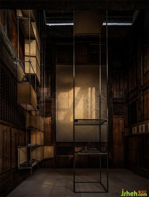 博物館設(shè)計充沛的光線縈繞在大堂,七米的挑高讓人對空間的關(guān)注自然地從平面走向縱深。光明和陰暗不但輝映著空間,也隱喻著時間。而這也正呼應(yīng)了松陽十鐘山房博物館對于時間的記錄和記憶。