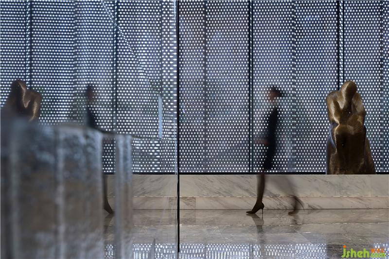 入門,一面高級(jí)復(fù)古的磚材與清冽透明材質(zhì)相組合的“城墻”迎面而來,通過材質(zhì)、紋理、自然光線的變化,展現(xiàn)出復(fù)古又不失精致的設(shè)計(jì)。設(shè)計(jì)中不同維度、新舊元素碰撞互融,在碰撞中,逐漸感受歷史文化背景的延伸。