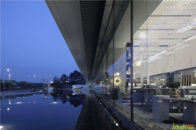 設(shè)計(jì)師同時(shí)也強(qiáng)調(diào)室外景觀與室內(nèi)空間的關(guān)系,透過巨大的落地玻璃,設(shè)計(jì)融入遠(yuǎn)處的青山和白水,燕鳥在這方天地轉(zhuǎn)圜翱翔。室內(nèi)室外,舍棄浮華與喧囂,重歸天地與自然。