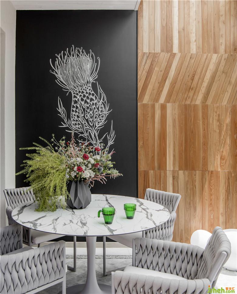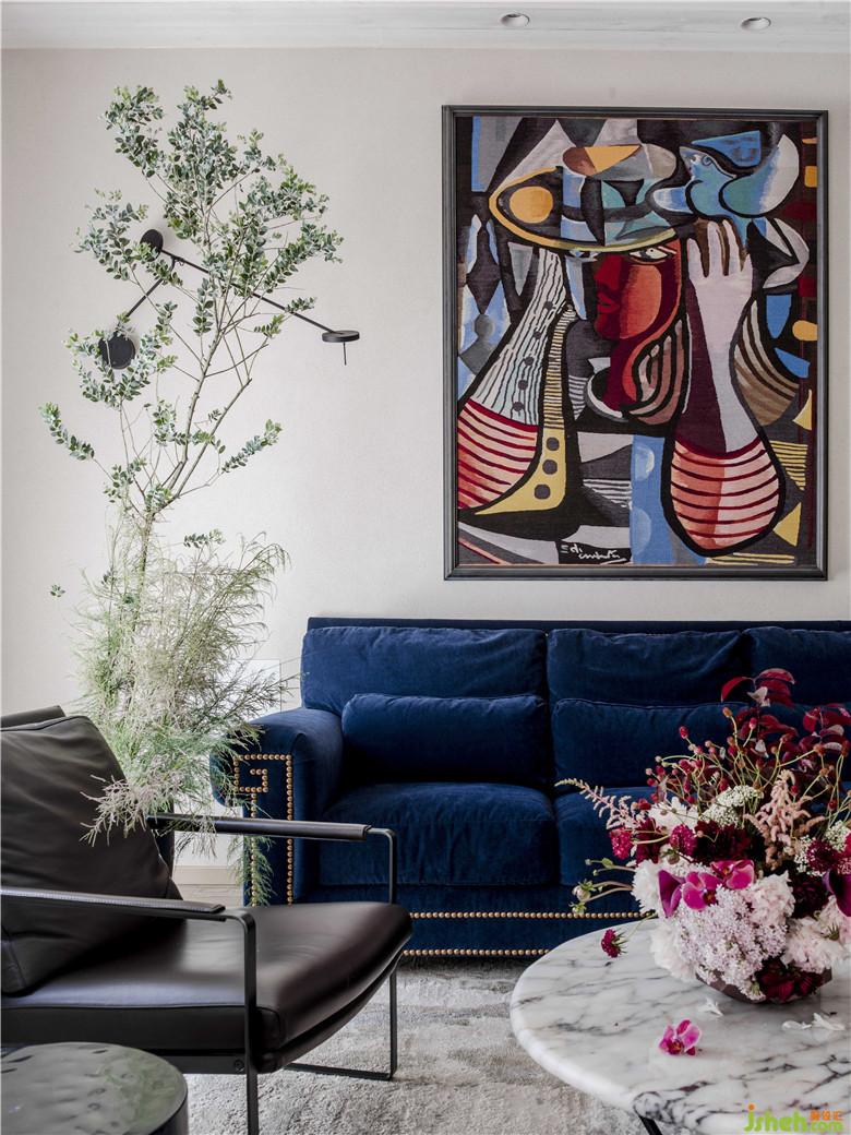 深藍(lán)色的沙發(fā)、巴西畫家Emiliano Di Cavalcanti的畫作、漂亮精致的花藝,成為新生活的縮影,精致工藝之外是對生活真切的關(guān)愛。