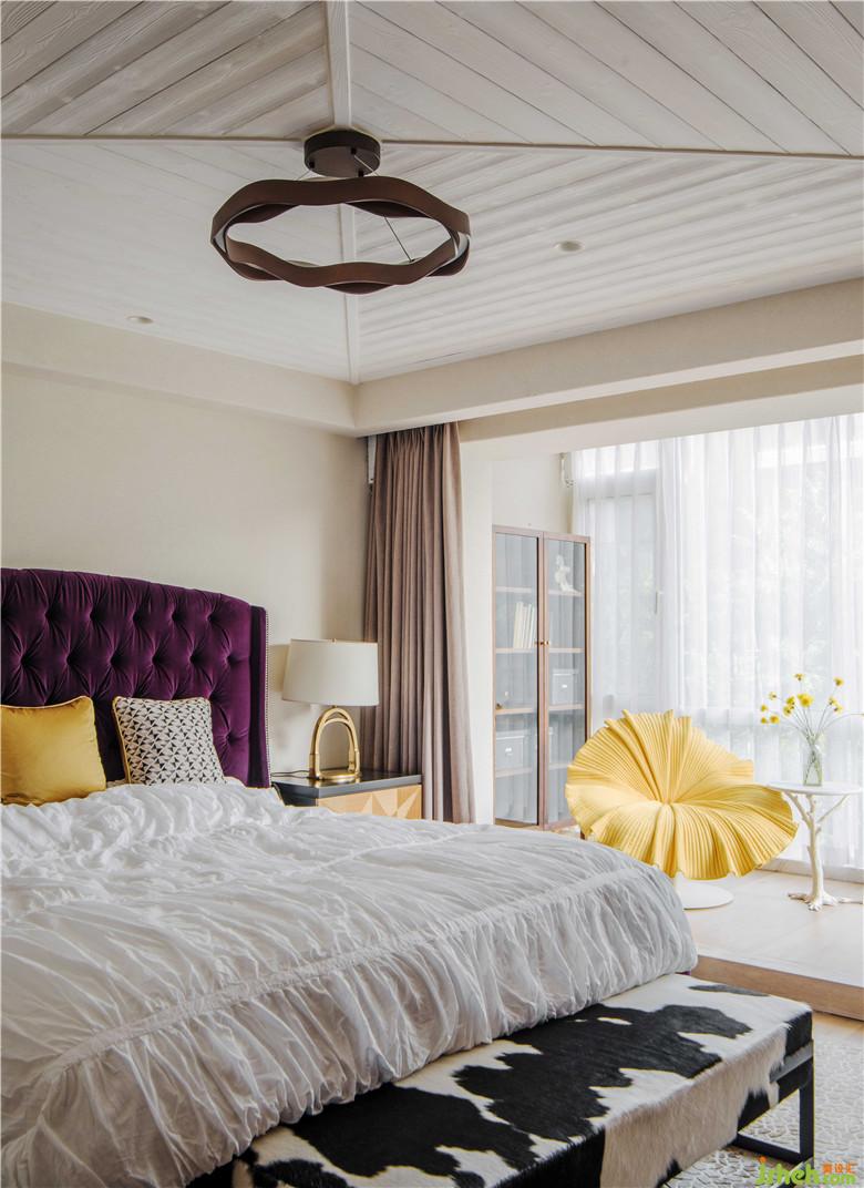 主臥的采光極好,這款漂亮的BloomChair是設(shè)計師Kenneth Cobonpue的作品,自然的褶皺和鮮艷的顏色,讓它宛如一朵綻放的鮮花,坐在這么可愛的椅子上,感覺自己變成了鮮花中的拇指姑娘。