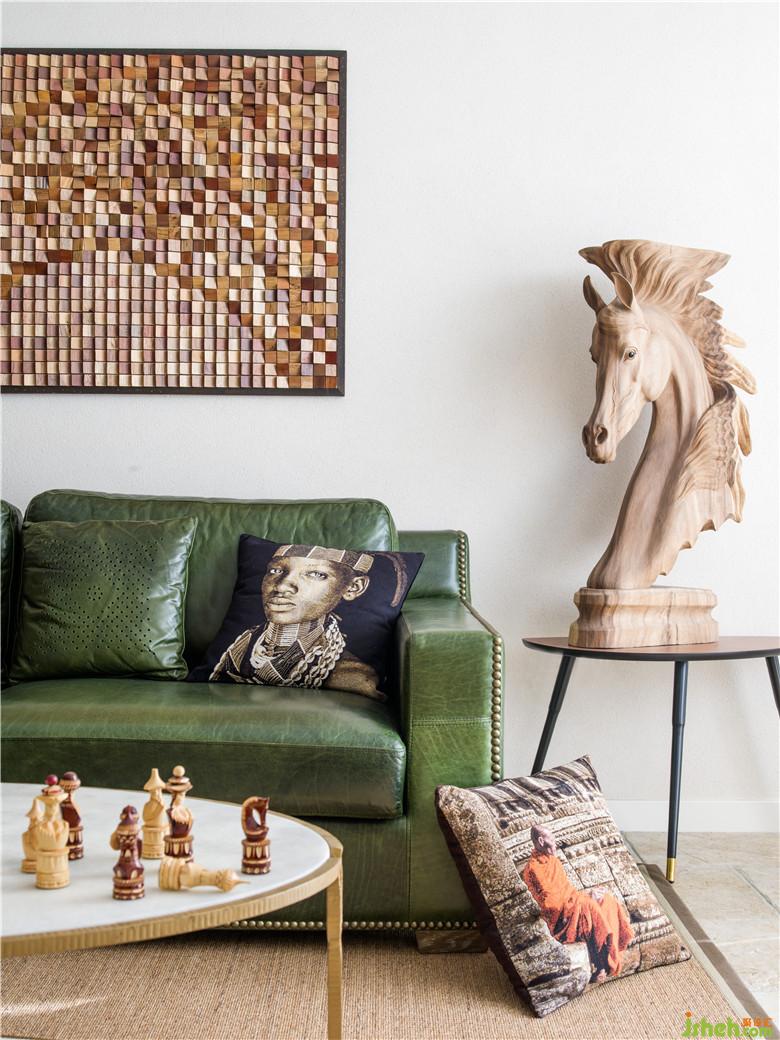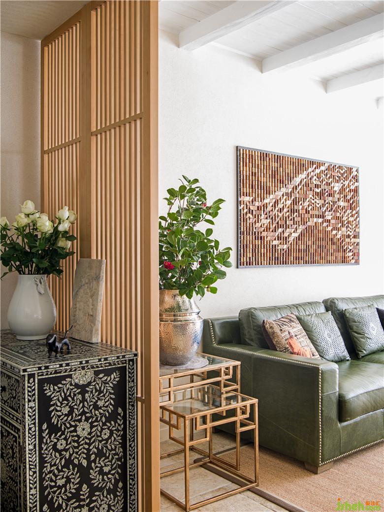 由于主人一家都熱愛旅行,都有很好品位,并對手作之物有所偏愛,因此,在這一層中既有各類木質(zhì)、金屬質(zhì)的工藝品的擺放,又有棉麻質(zhì)地的布藝的使用,輕松營造出自然又具藝術(shù)氣息的氛圍。
