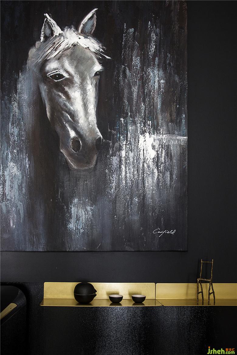 黑色馬匹,用黑色琥珀漆裝飾墻作畫框,好像是長在墻上的藝術(shù)品。關(guān)上門,外面是潮流,家中是真實(shí)自我。男女主人的起居生活空間,包括主臥室、衛(wèi)生間、衣帽間以及一個(gè)日式和室,此外,主人臥室保留露臺(tái)區(qū),以享受觀景品茶樂趣。
