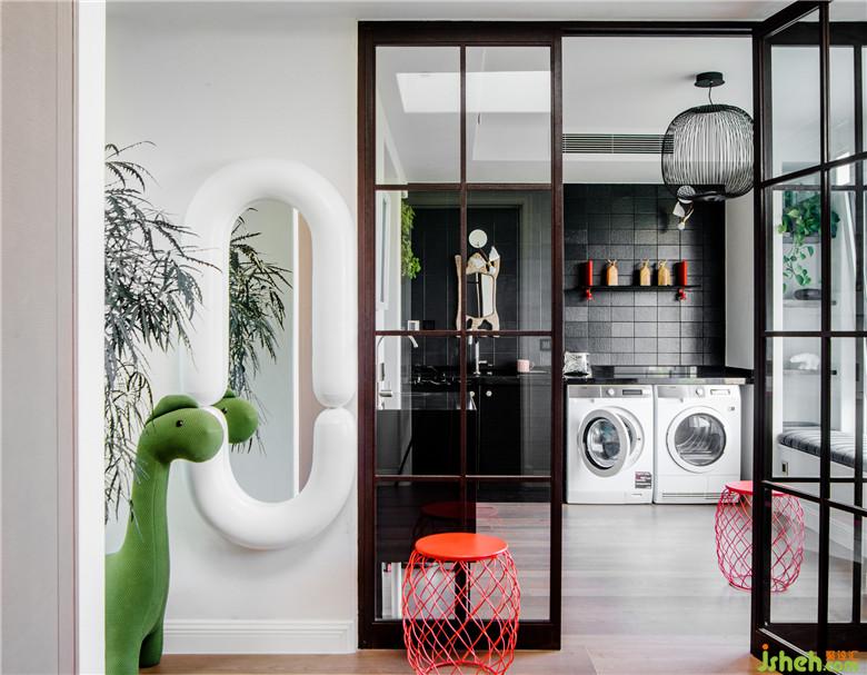 明亮舒適的洗衣房,是對勞動者的關(guān)懷,為了更好的采光,分隔洗衣房與兒童娛樂區(qū)則采用了玻璃隔斷。