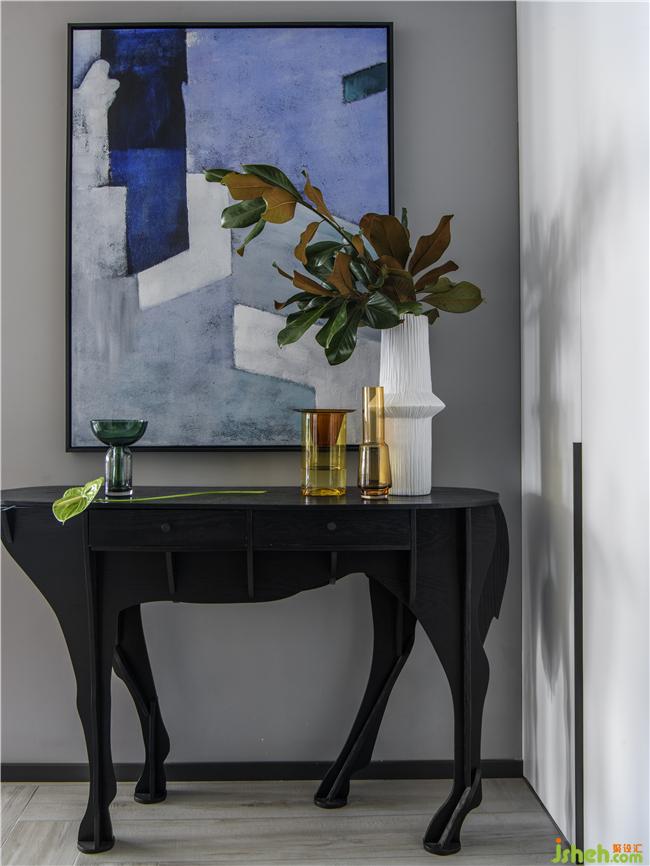 一張Elisee的駿馬玄關桌被安放在入口處,它優(yōu)雅、靈動與墻面上的藝術作品和桌面上的迎客花卉相映成趣,從進門的一刻就感受到這個家濃烈的生活氛圍和藝術氣息。