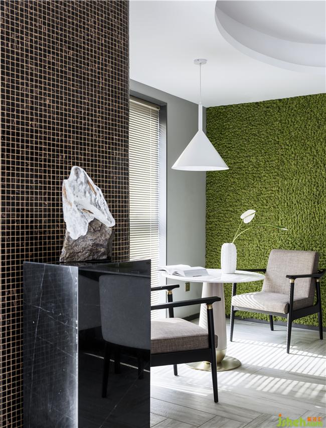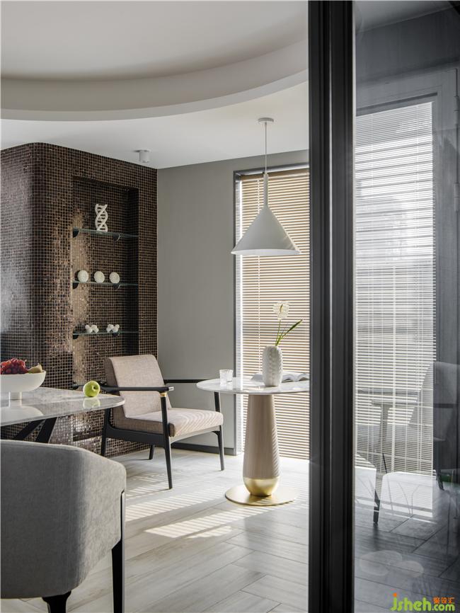 休閑區(qū)茶室的設計非常清雅,這樣一方愜意的角落,姣好的采光讓空間沐浴在陽光之下,十分通透,閑暇之時泡一壺香醇的普洱茶,在茶水的清香中領略生活的真趣。