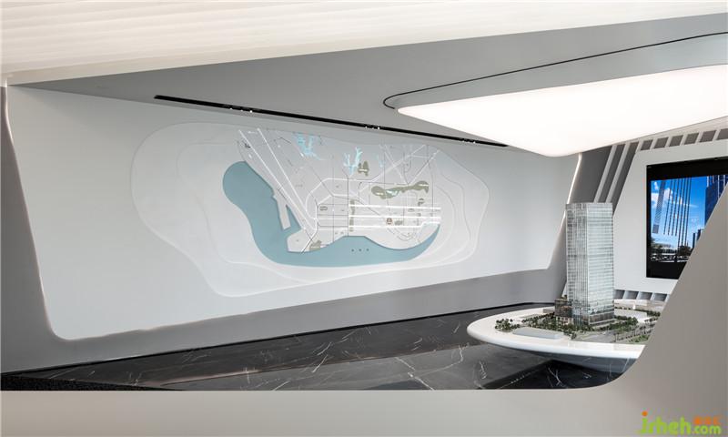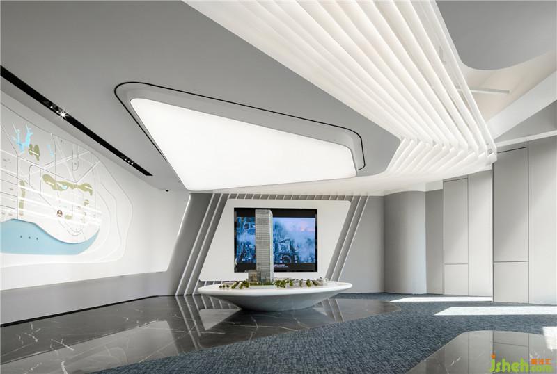故在空間布局與動線設(shè)計的考量上,為平衡辦公與展廳雙重需求,滿足商務(wù)接待、智能辦公及休閑洽談功能,設(shè)計師將整個場地視為一個可游走的空間系統(tǒng),不管是服務(wù)臺、沙盤區(qū),多功能辦公區(qū)、還是休閑洽談區(qū),會議區(qū)等都具有一定的平面構(gòu)成感,既相互獨立而又互相連貫,滿足在有限空間中實現(xiàn)功能復(fù)合的概念。同時秉持環(huán)保生態(tài)設(shè)計理念,尊重環(huán)境的本真饋贈,通過實體墻柱和透明的玻璃圍合設(shè)計,以最大尺度對灣區(qū)進行場景化定格,將絕美風光引入室內(nèi)。