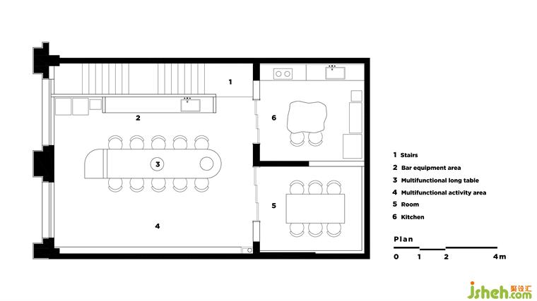 出于方便酒類搬運(yùn)、存儲(chǔ)和展示的需求,酒莊設(shè)計(jì)團(tuán)隊(duì)將場地中重要的恒溫酒室、倉庫和品鑒吧臺(tái)都放在了一層,這樣對于進(jìn)店的客戶可以形成方便的操作和展示動(dòng)線。由于需要少量的酒類配餐和小型活動(dòng)的餐飲功能,二層特別設(shè)置了一間廚房,方便制作和互動(dòng)。二層的長桌區(qū)不僅可以作為招待小型餐飲品酒的區(qū)域,更可以搭配投影幕布,作為一個(gè)商務(wù)會(huì)議場所使用。