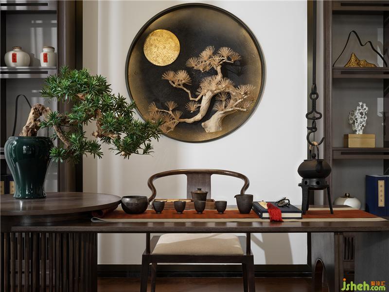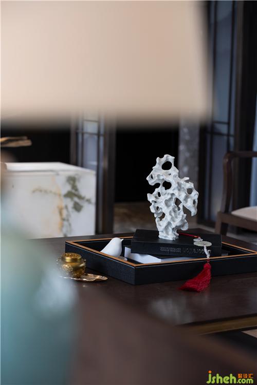 松之風(fēng)物,清心雅靜,與樸拙木架、精巧小品、留白畫卷于空間中并置,光影搖曳之間,讓人感覺清氣自來,頓遠(yuǎn)凡塵襟懷。