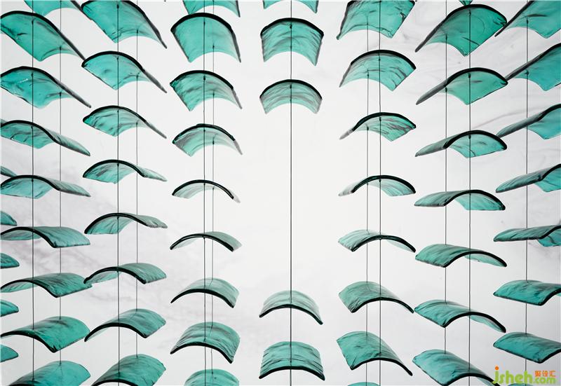 水鄉(xiāng)的波光粼粼呈演于波紋天花之上,江南的屋宇形制以透明亞克力串聯(lián),與水波相映,與環(huán)境意趣相諧。