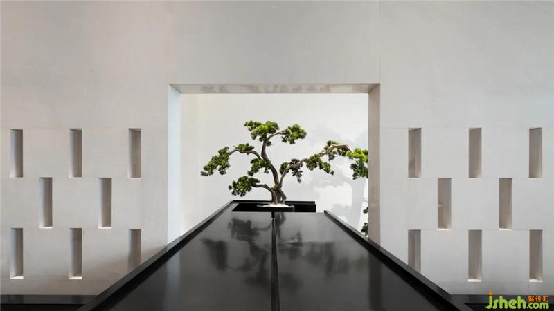 現(xiàn)代材質(zhì)與東方制式的混搭,在恰到好處的審美距離內(nèi),設(shè)計(jì)于潮流與傳統(tǒng)中建立了深刻的空間記憶點(diǎn),傳達(dá)出頗具靈韻的江南印象。人穿行其中,猶如伴舟行于水面,閱盡兩岸屋舍與岸堤垂柳,入目盡是詩(shī)意。