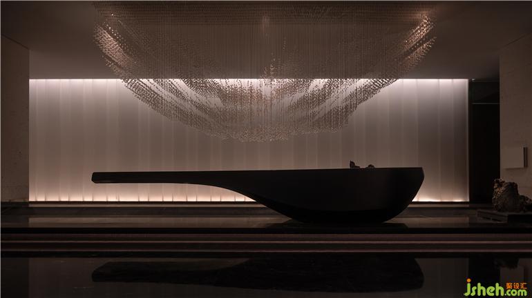 二樓客房前廳的設(shè)計(jì)取了水浪與舟船雙重的寓意,水療設(shè)計(jì)起伏流淌的水滴聚集成了展翅的鳥群,令人回味無窮。與江水為友,是家家門外可泊舟的古意;望浪花奔涌,聽一曲槳聲燈影的枕河風(fēng)情。