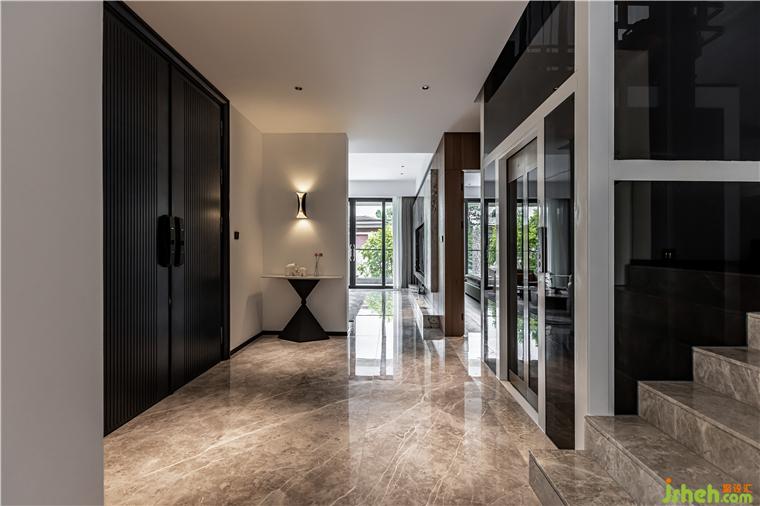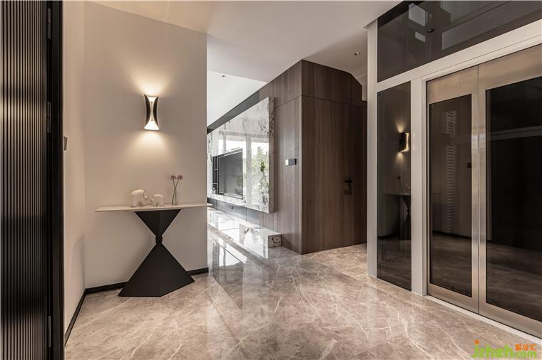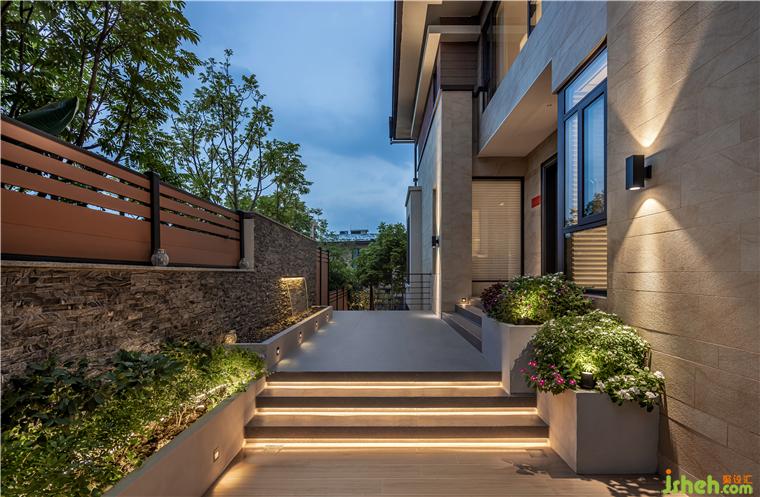 戶內(nèi)花園是主人生活品味的第一呈現(xiàn),佛山保利云上別墅裝修設(shè)計(jì)師利用階梯的錯(cuò)落關(guān)系,通過植物花箱的高低銜接,結(jié)合瀑布流水墻的動(dòng)態(tài)渲染,打造迎客模式。流水與鵝卵石相互碰撞,產(chǎn)生悅耳的聲音,如大自然般清新脫俗,這也讓主人回家富含了儀式感。