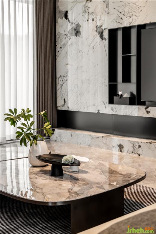 主要材料/仿石材瓷磚 進(jìn)口巖板 檀木木紋飾面 膚感膜柜體飾面 布紋護(hù)墻板