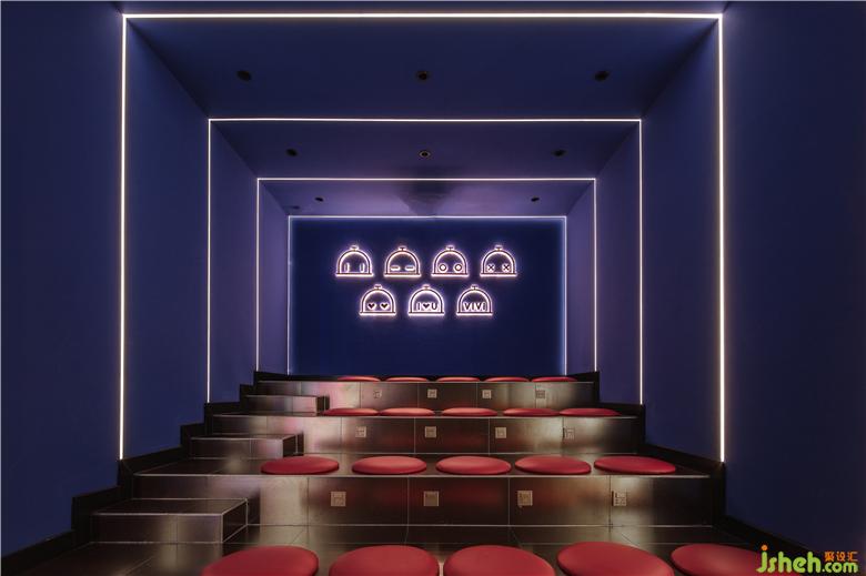 等位區(qū)設(shè)置了階梯式座位,合理規(guī)劃客流的動線,可容納更多人候餐的同時,微妙地改變著整個空間的氛圍,打造影院般極致視聽享受。四周的墻面采用半啞光漆面以加強空間的縱深,LOGO內(nèi)部嵌入LED顯示屏,通過變化不同的表情形態(tài)帶來豐富的空間情緒,增強了消費者對空間的體驗感。