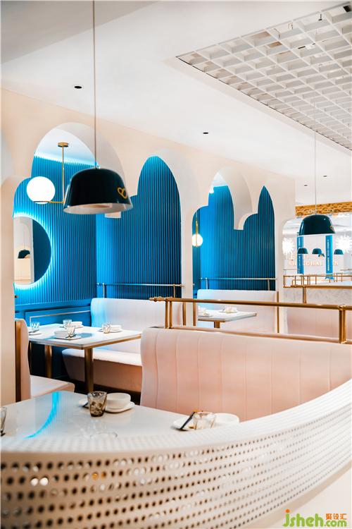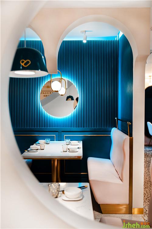 室內(nèi)開(kāi)放式的格局設(shè)計(jì),利用空間之間的穿插、區(qū)分,流暢的動(dòng)線(xiàn)與機(jī)能,滿(mǎn)足顧客多樣化的用餐需求。明亮的鏡面與金屬線(xiàn)條糅合在一起,不經(jīng)意間散發(fā)出戲劇化的空間延展感,能夠活躍空間精神層面的表達(dá),打造出后現(xiàn)代的輕奢體驗(yàn)。