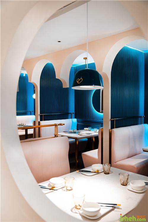 水紋不銹鋼在室內(nèi)形成一個(gè)充滿(mǎn)流動(dòng)性的天花空間,沖孔板拼接的"圍墻"隔而不斷,用幾何之形表空間之美。不僅提升了餐廳設(shè)計(jì)的體驗(yàn),也顯示出對(duì)傳統(tǒng)港式餐飲獨(dú)特而現(xiàn)代的詮釋。