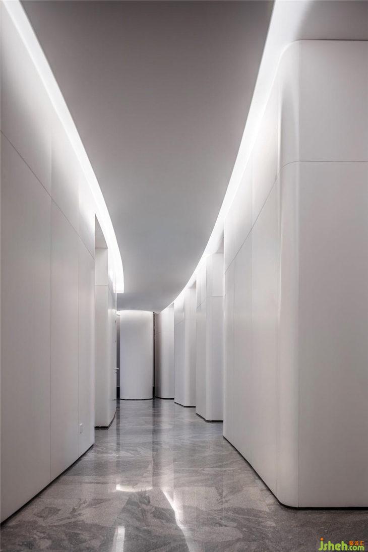 白色體塊堆砌出狹長的視角,光線穿透變化著堆疊的體塊,吸引來客在空間中不斷的深入探索,也令人在墻垣之中獲得自在與放松。