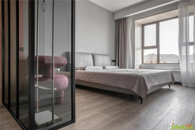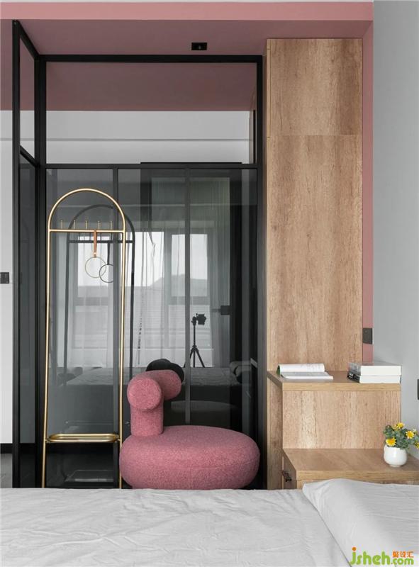 在整體的配色和材質的搭配設計上采用了黑白灰的主色調,稍微加入一些女主人喜歡的粉色,材質上搭配了稍許的原木,由而產生了一種溫柔與力量感并存的化學反映。就像這個家里的女主人和男主人一樣天津裝修室內設計。