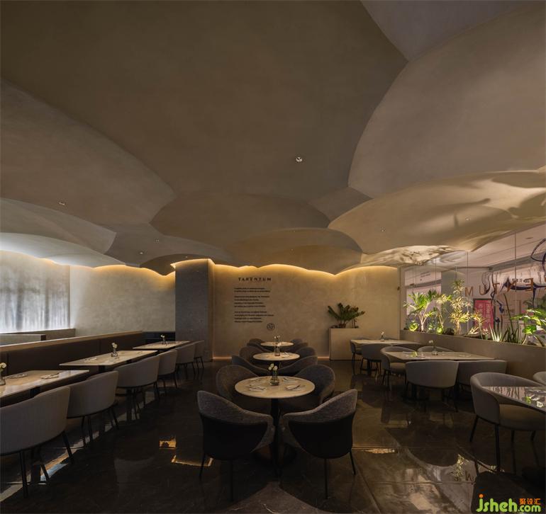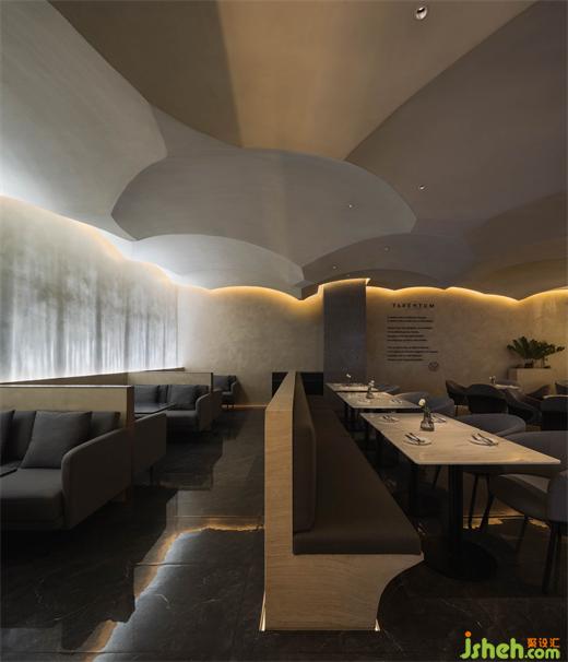 在就餐區(qū)域,隨著沙丘的連綿起伏,餐廳設(shè)計空間屬性從開放到半圍合再到私密,劃分出不同層次的空間。