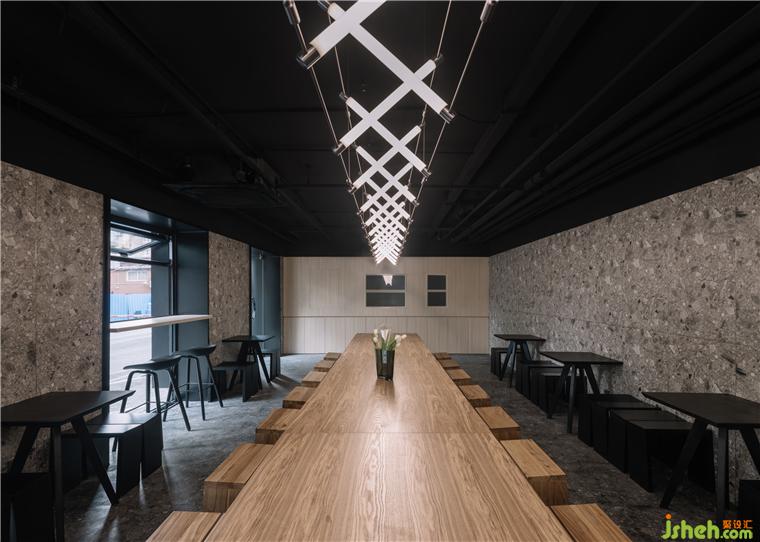 Externally, the exterior walls are painted with a light textured coating, freeing the dining room from the old red textured building, and framing the boundary between old and new. The dilapidated doors and windows of the original facade have been replaced with more permeable folding windows. The black steel plate winds up and down, separating the solid wall from the transparent glass windows and becoming the building's new facade. The upper part of the steel plate formed window frames, while the lower part of the steel plates became outdoor chairs. Folding windows on the facade and outdoor seating enhance the restaurant's connection to the street.