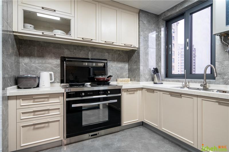 減少不必要的裝飾,保留最純粹的烹飪樂趣,外部陽光進入廚房后,經(jīng)過瓷磚反光效果,使得廚房空間更加敞亮通透,有時候愛很簡單,一句安慰,一個背后的擁抱,再有一碗你精心煲制的熱湯,此生足以。裝修設計