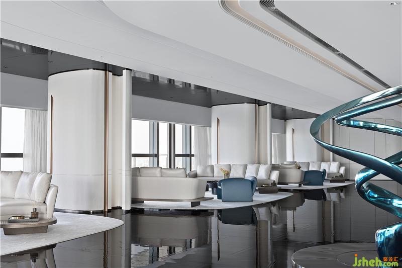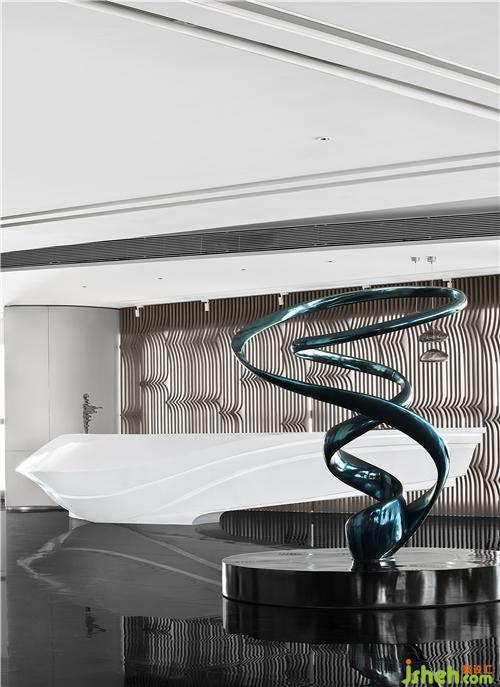 步入接待廳,空間以創(chuàng)意而簡約的流線型藝術(shù)雕塑擔起序章,現(xiàn)代主義美學及精尚的質(zhì)感,定制出屬于這個空間的設(shè)計語言。