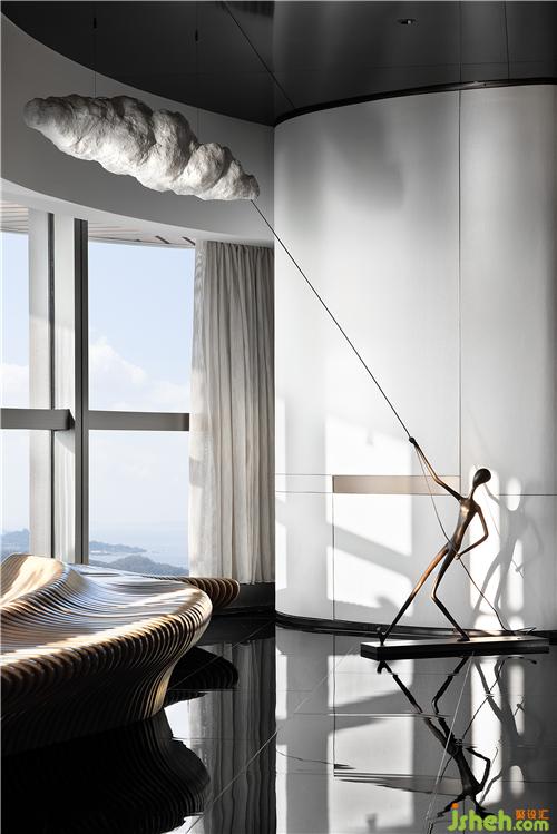 作為空間的過渡,漫思設(shè)計希望借由藝術(shù)雕塑的點綴,給室內(nèi)注入漫步云端的精神內(nèi)核,營造藝術(shù)與自然共融的靈妙意境。